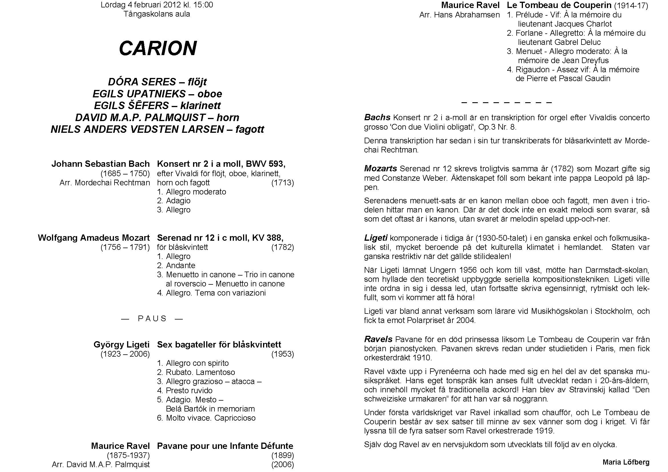 Carion Lördag 4 febr 2012 Tångaskolans aula Program |
