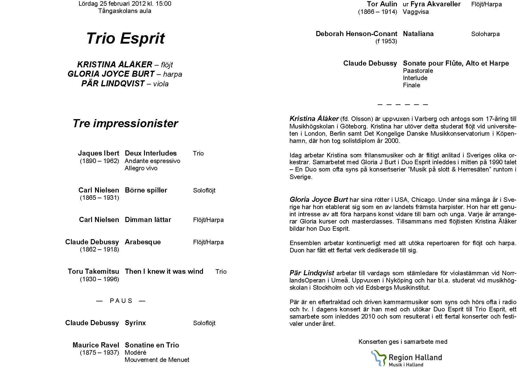 Trio Esprit Lördag 25 febr 2012 Tångaskolans aula Program |