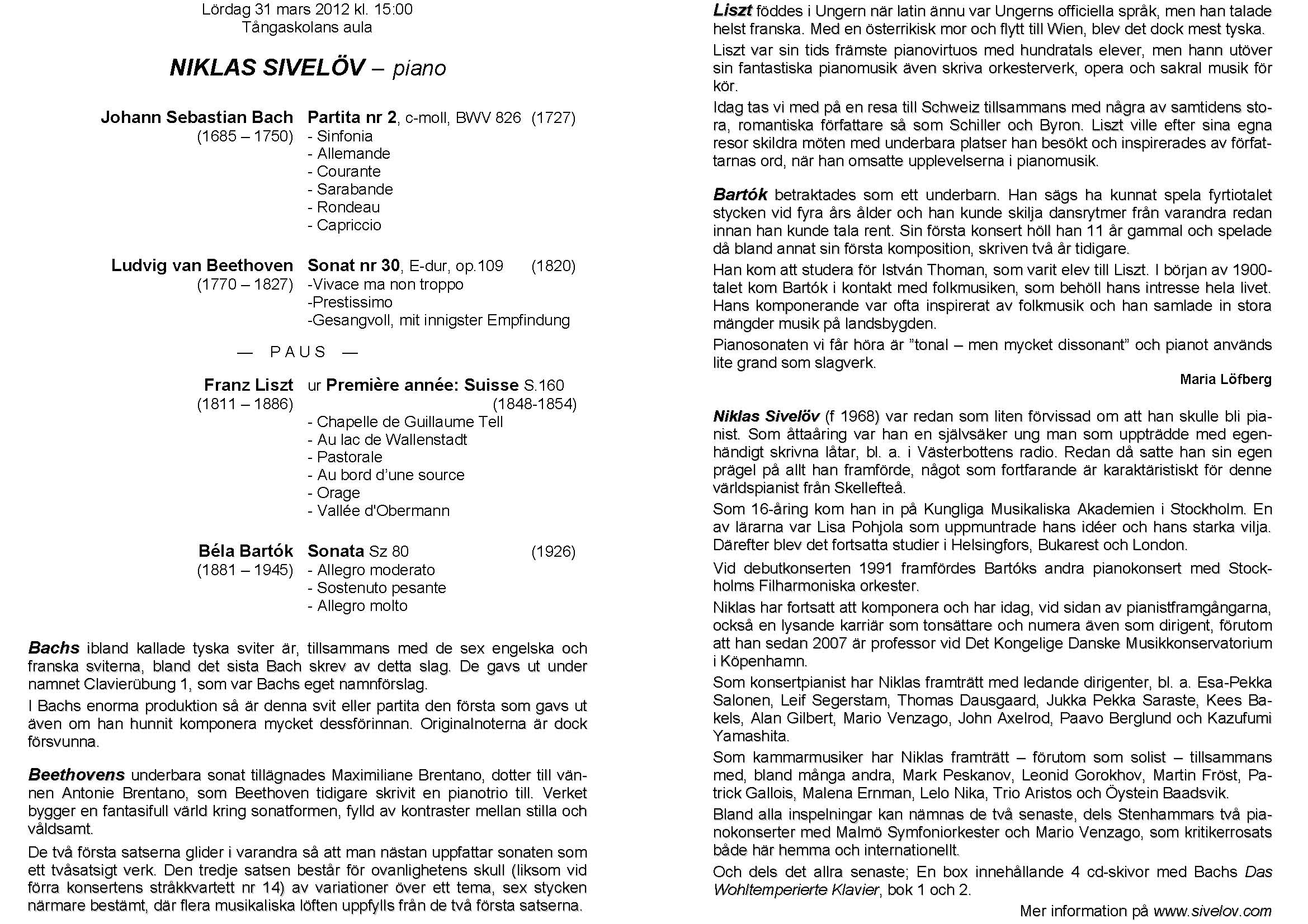 Niklas Sivelöv Lördag 31 mars 2012 Tångaskolans aula Program |