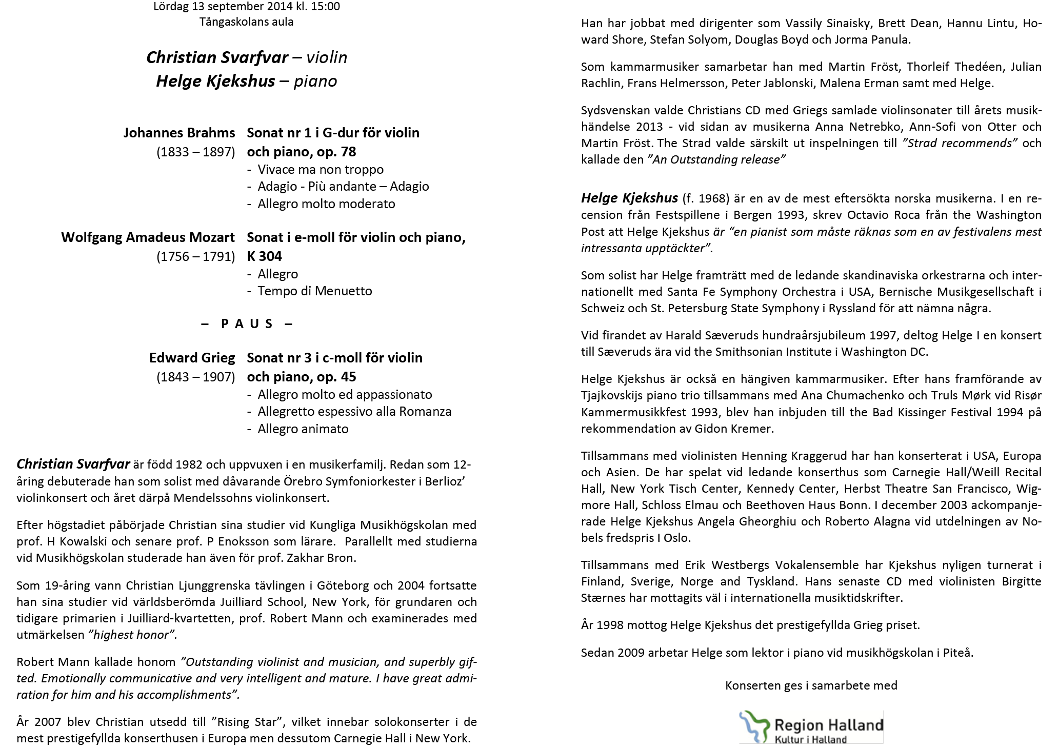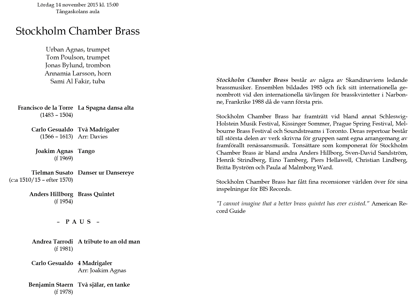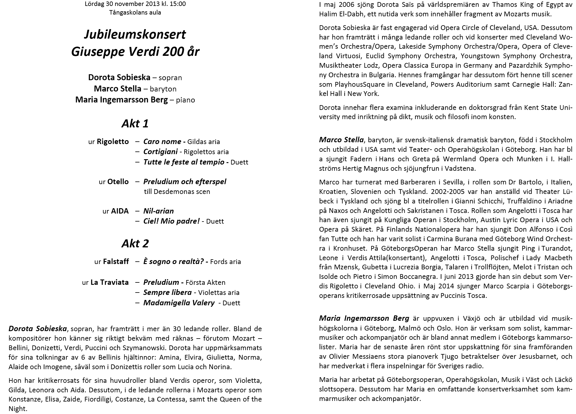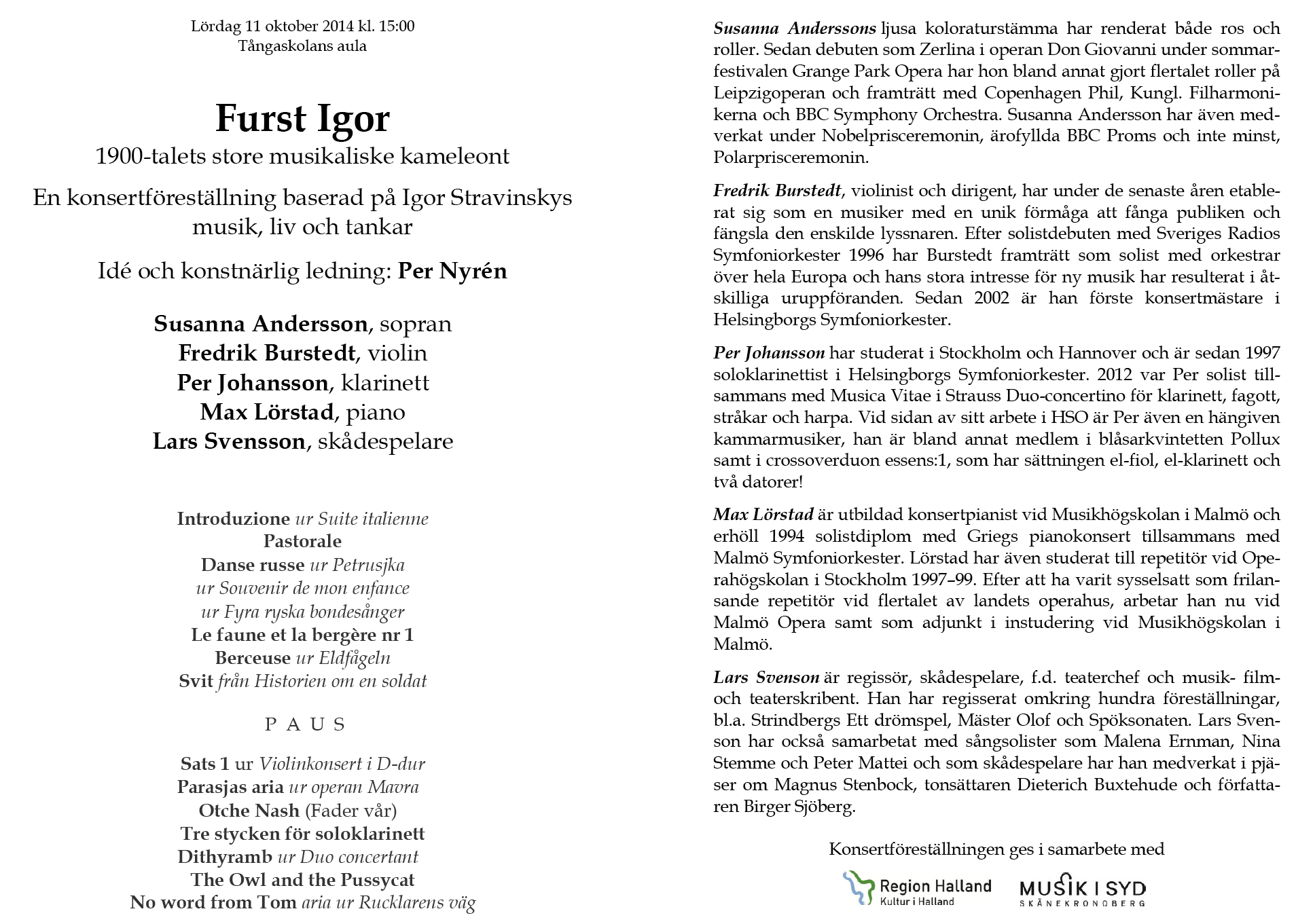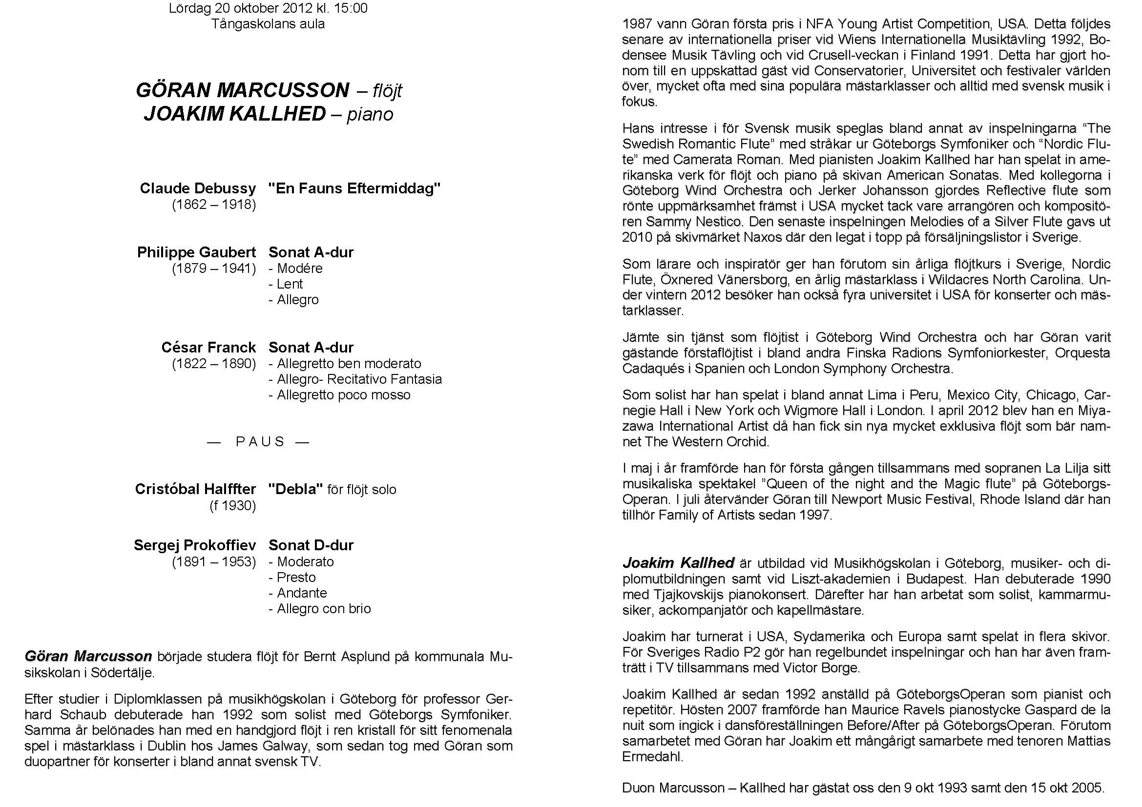 Göran Marcusson, Joakim Kallhed Lördag 20 oktober 2012 Tångaskolans aula Program |