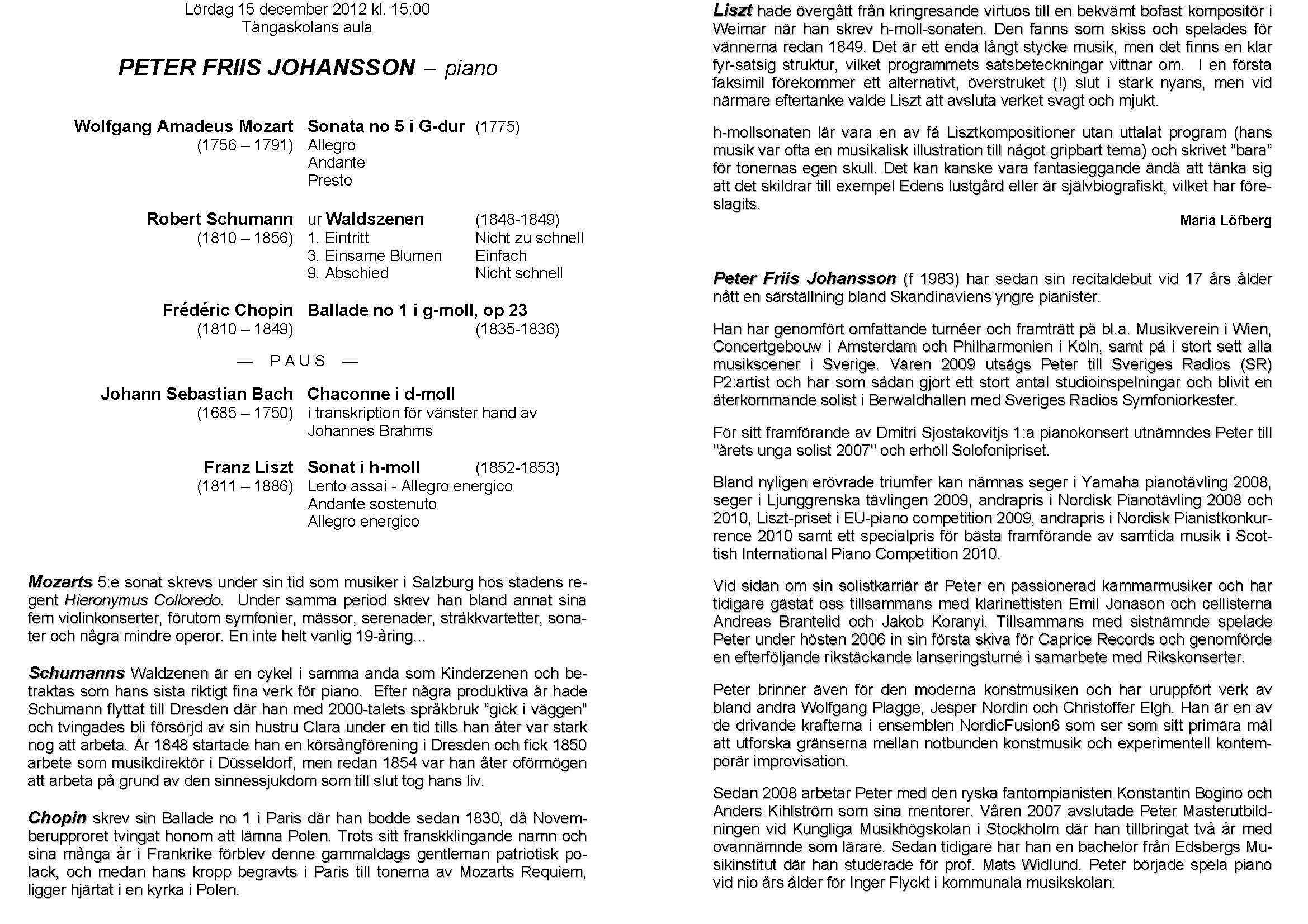 Peter Friis Johansson Lördag 15 december 2012 Tångaskolans aula Program |