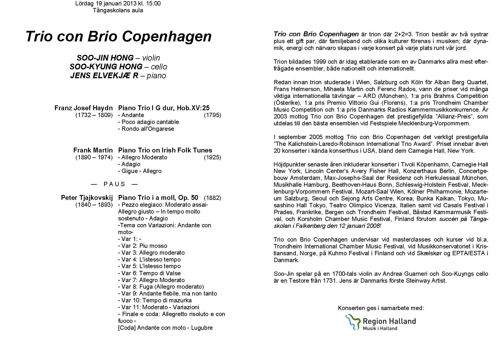 Trio Con Brio Copenhagen Lördag 19 januari 2013 Tångaskolans aula Program |