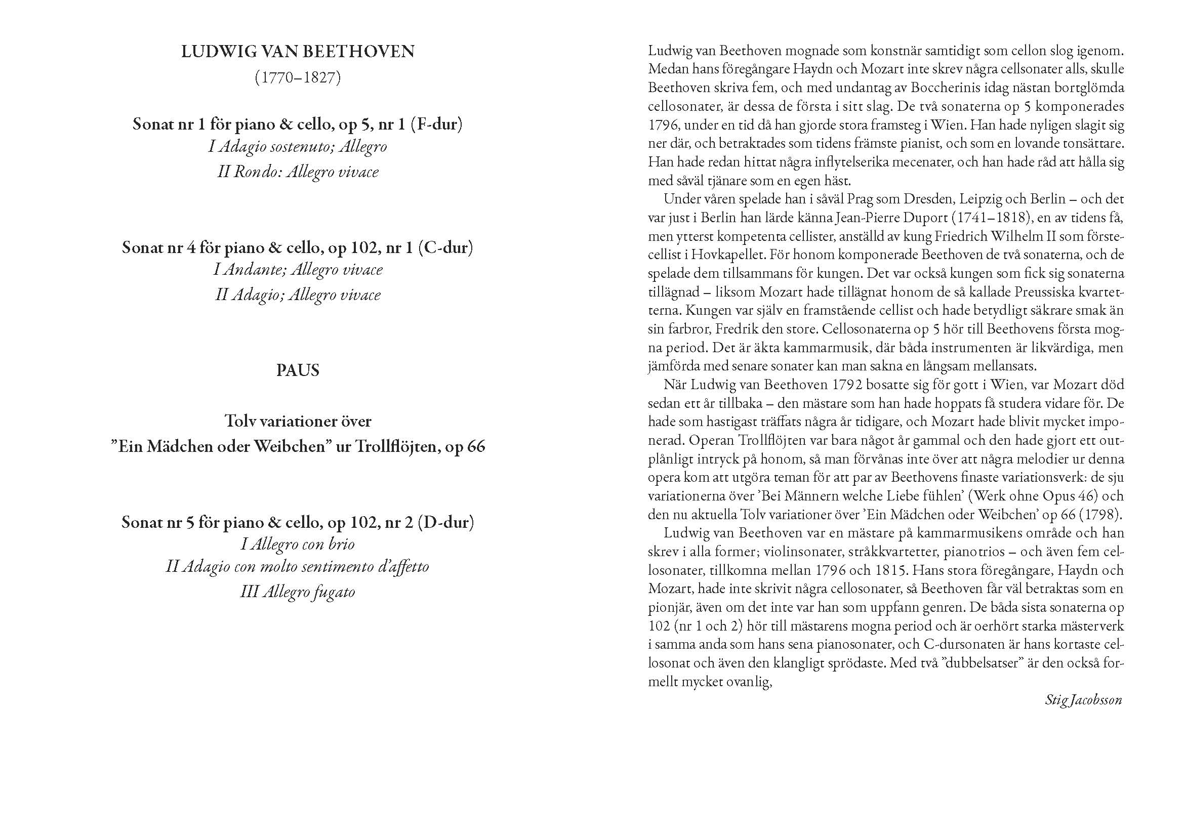 Andreas Brantelid- cello, Peter Friis Johansson- piano Lördag 24 januari 2009 Tångaskolans aula |