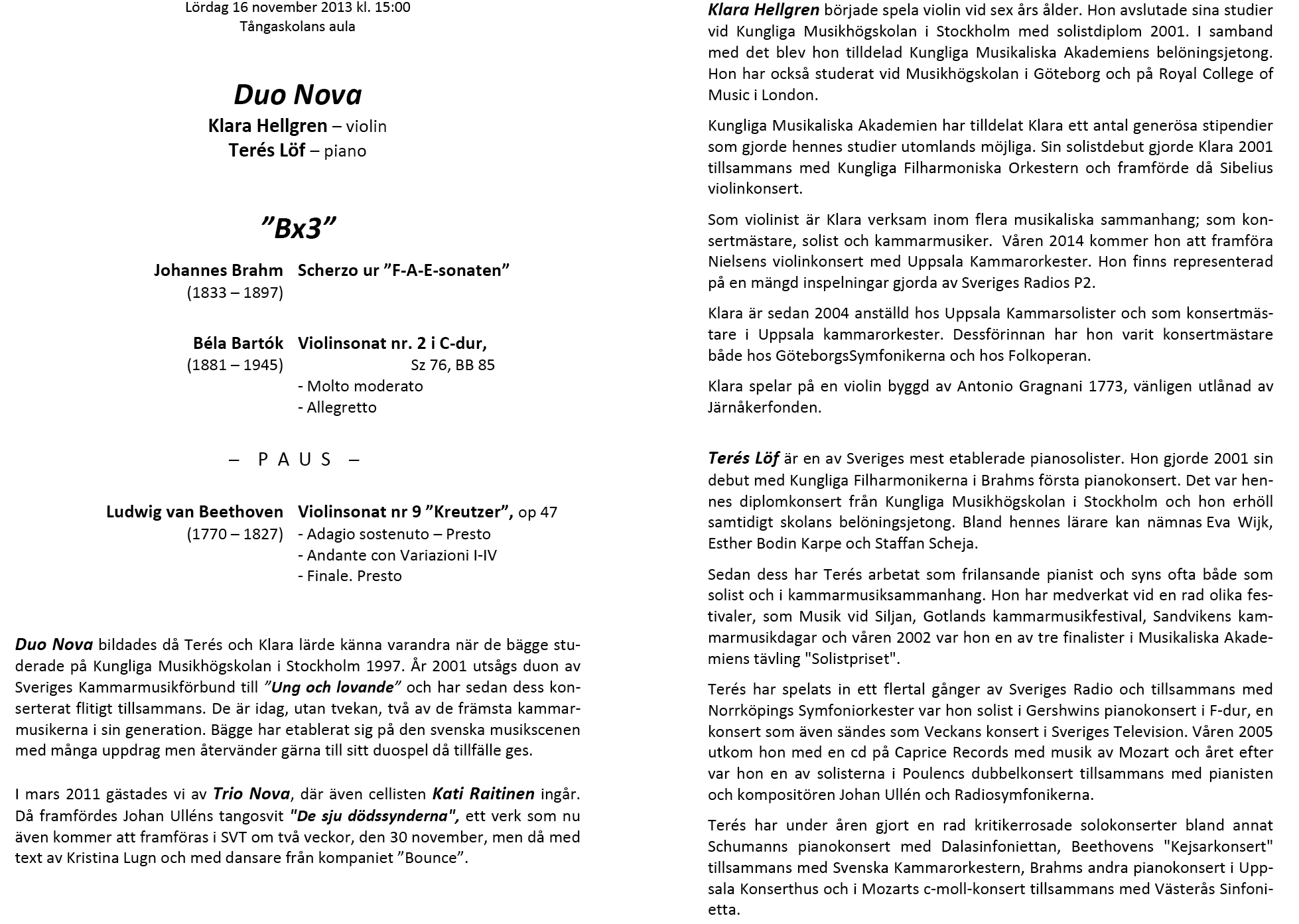 Duo Nova Lördag 17 november 2013 Tångaskolans aula Program |
