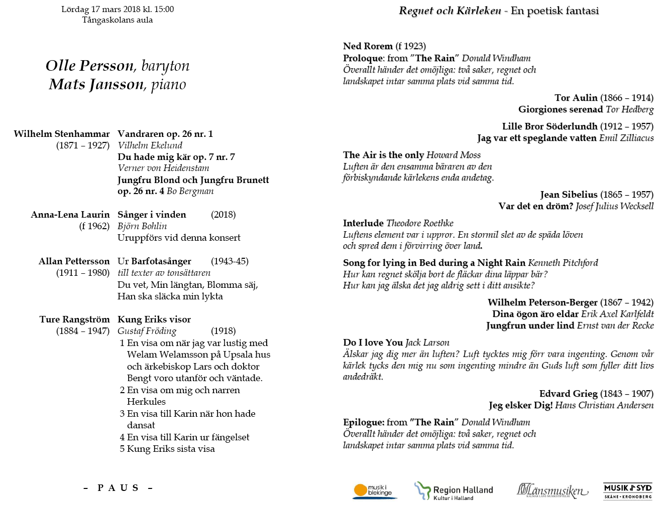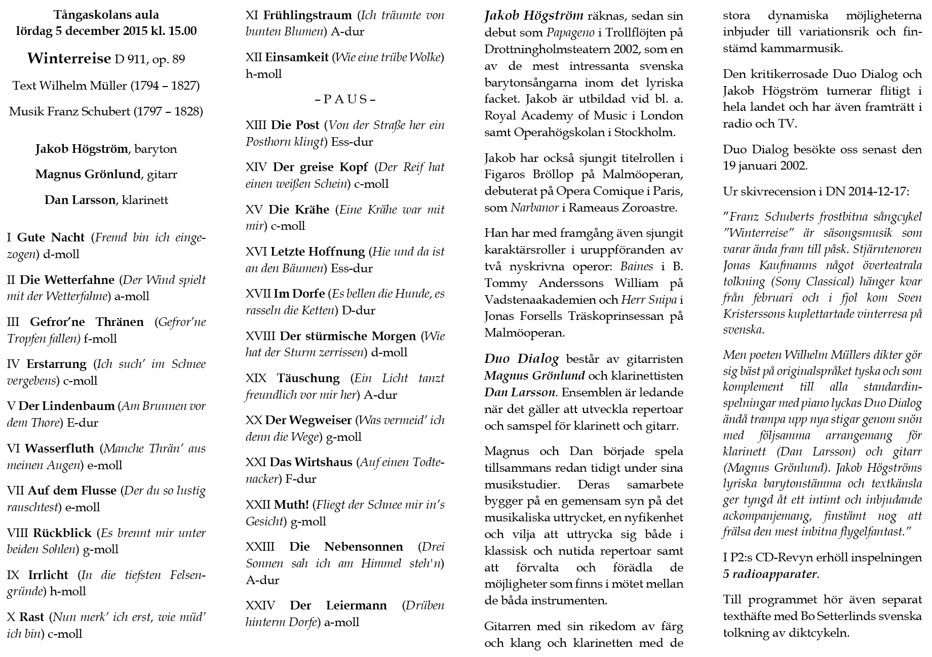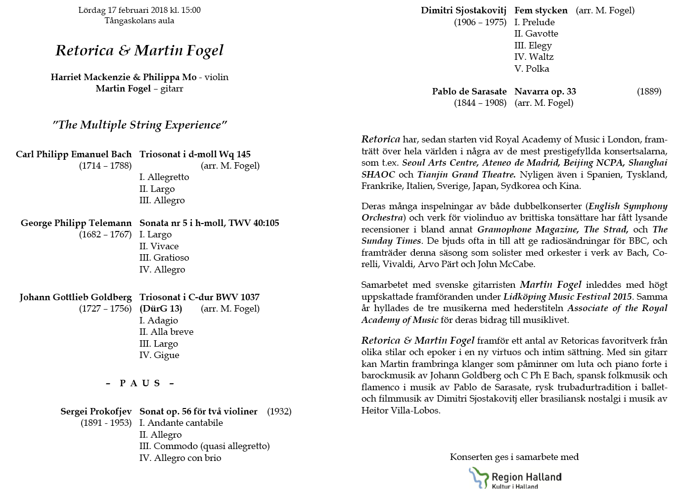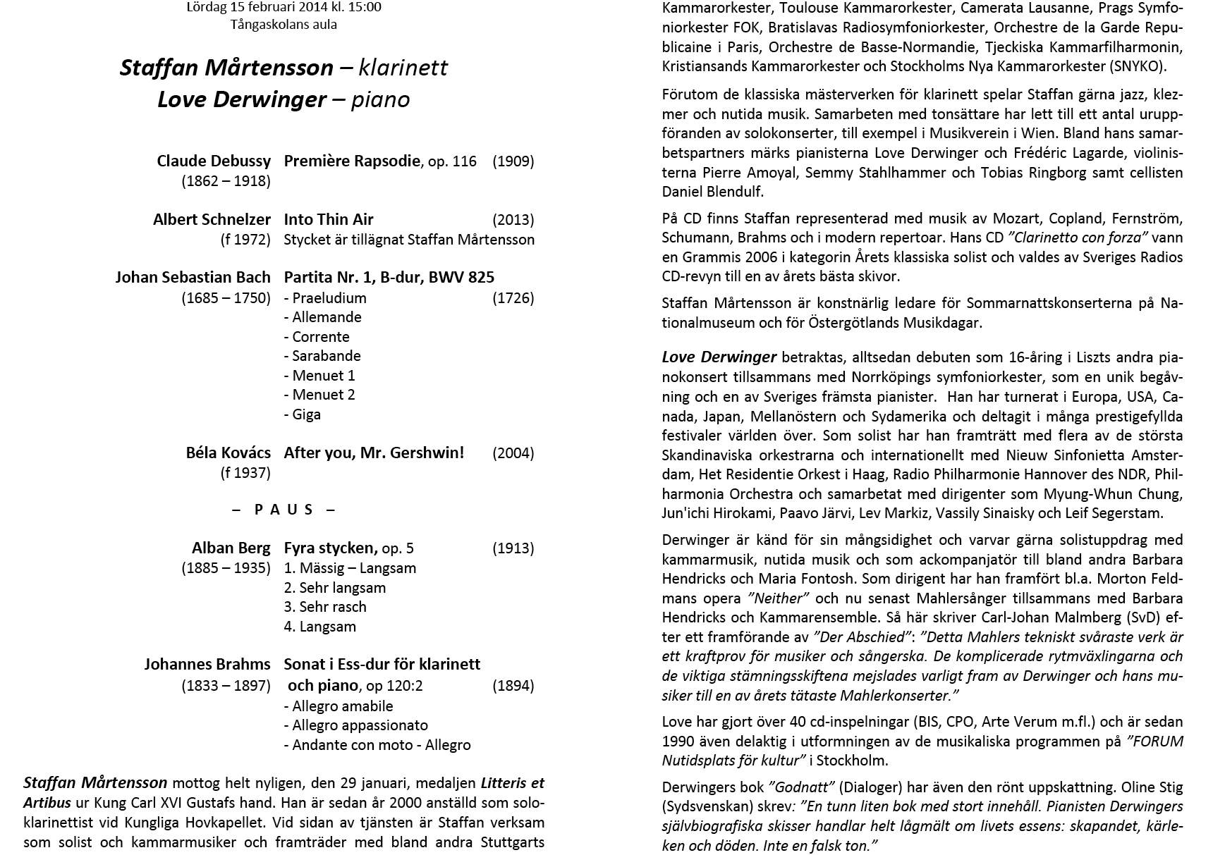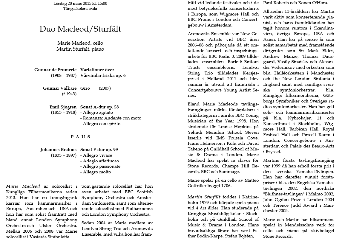 & Martin Fogel Lördag 17 februari Tångaskolans aula Program |