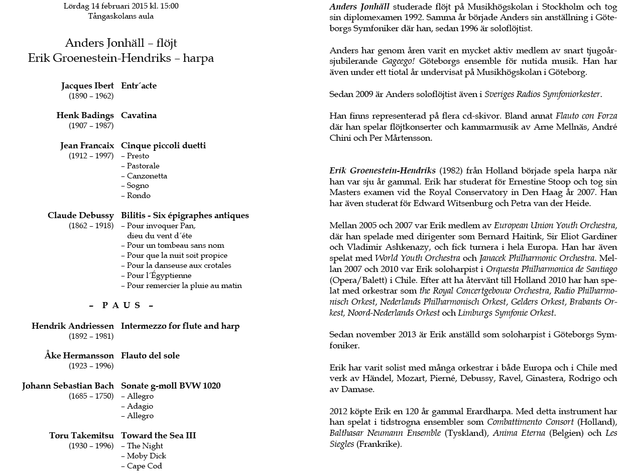 Jonhäll - flöjt, Erik Groenestein-Hendriks - Harpa Lördag