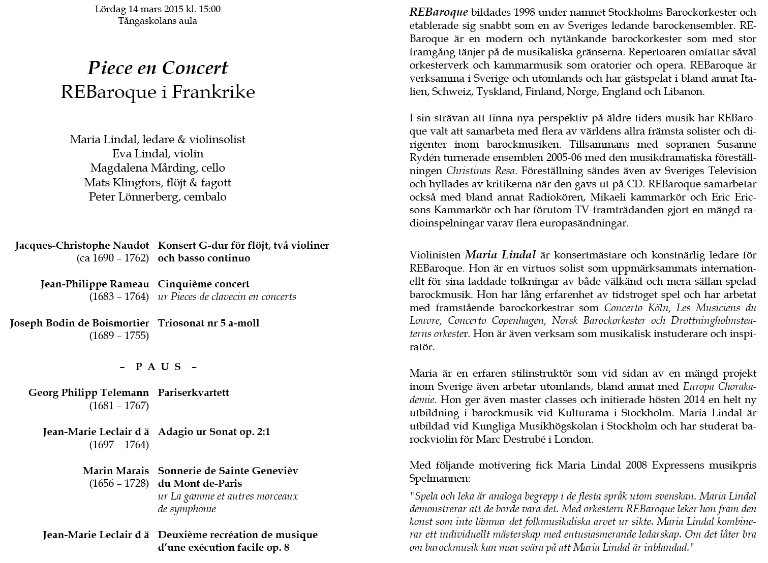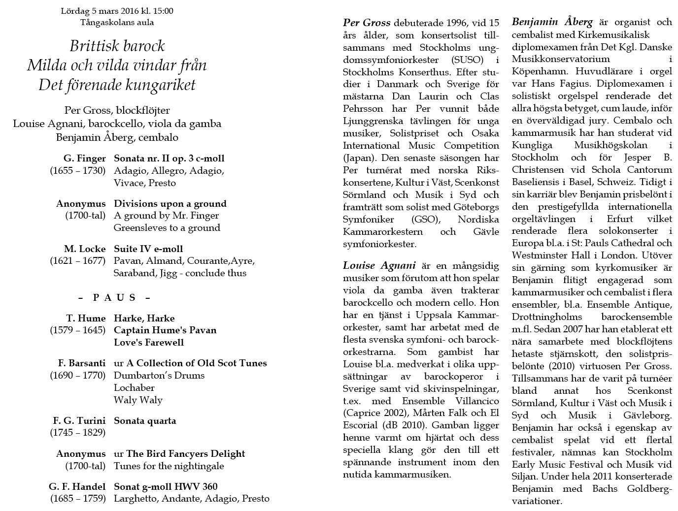 barock Lördag 5 mars 2016 Tångaskolans aula Program |