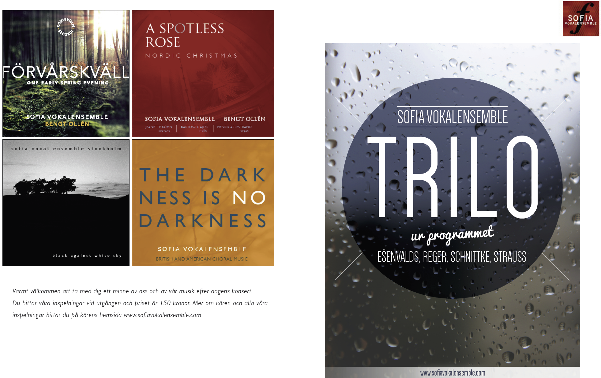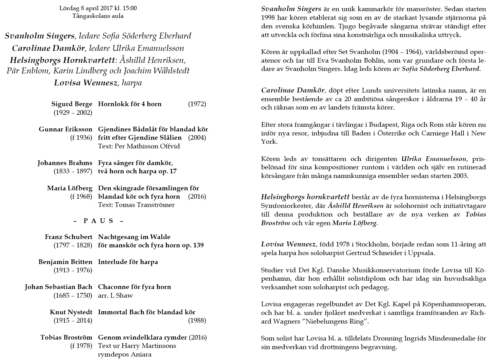 Singers, Carolinae Damkör, Helsingborgs Hornkvartett Lördag 4 april 2017 Tångaskolans aula Program |