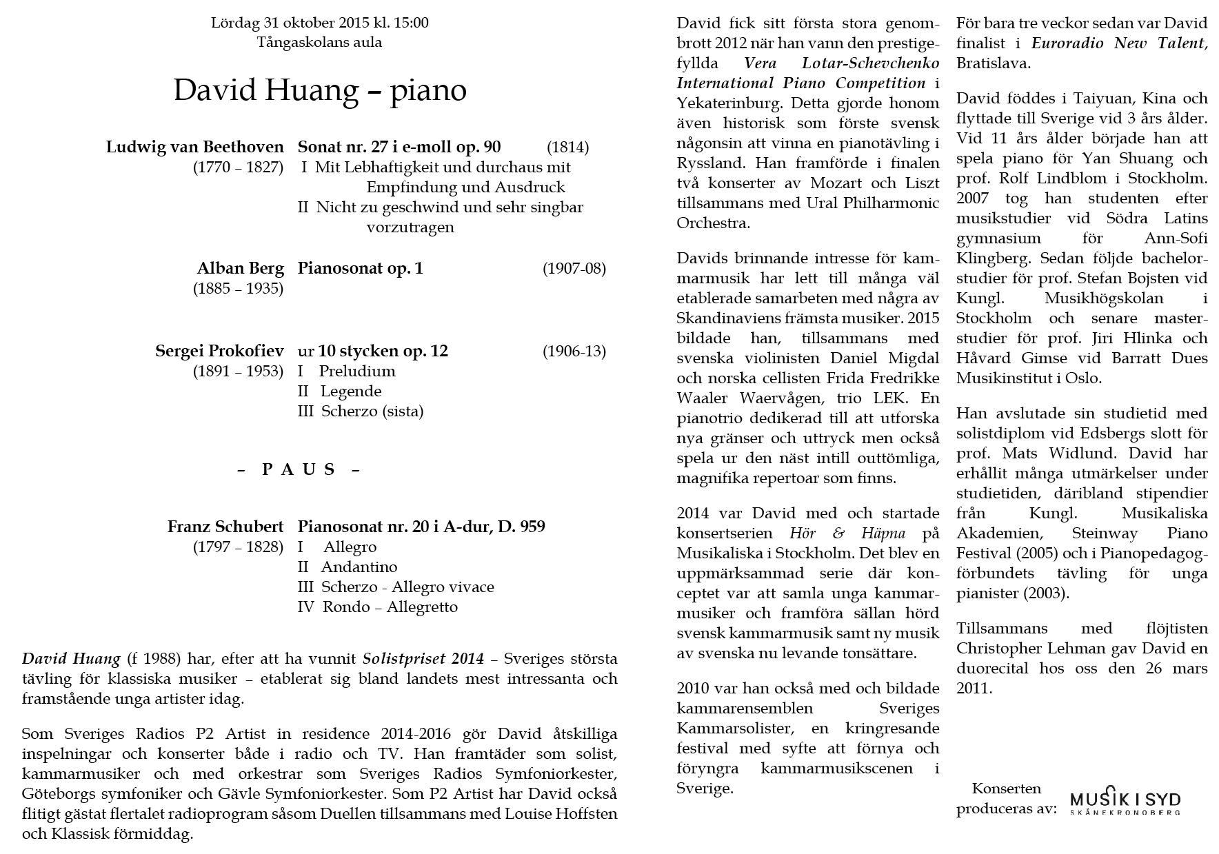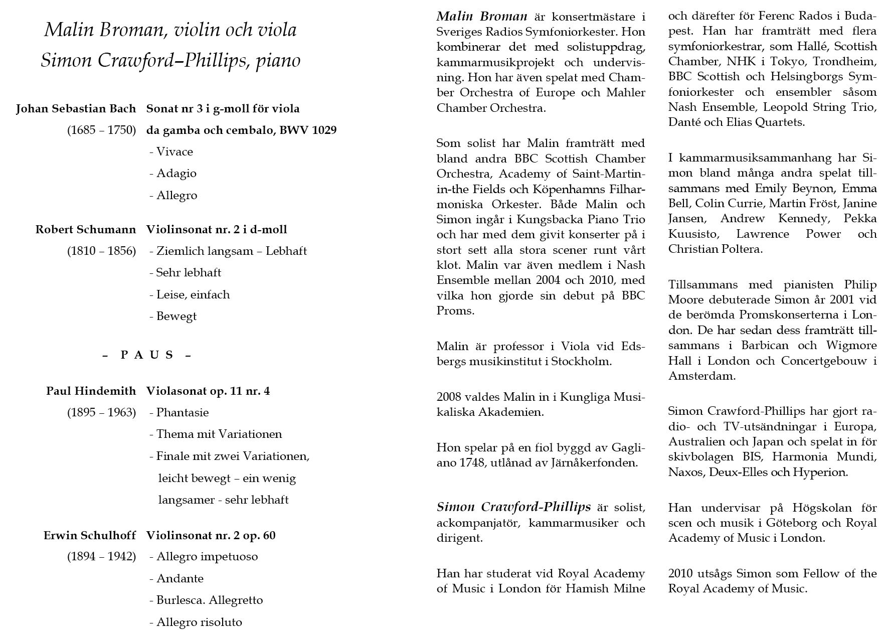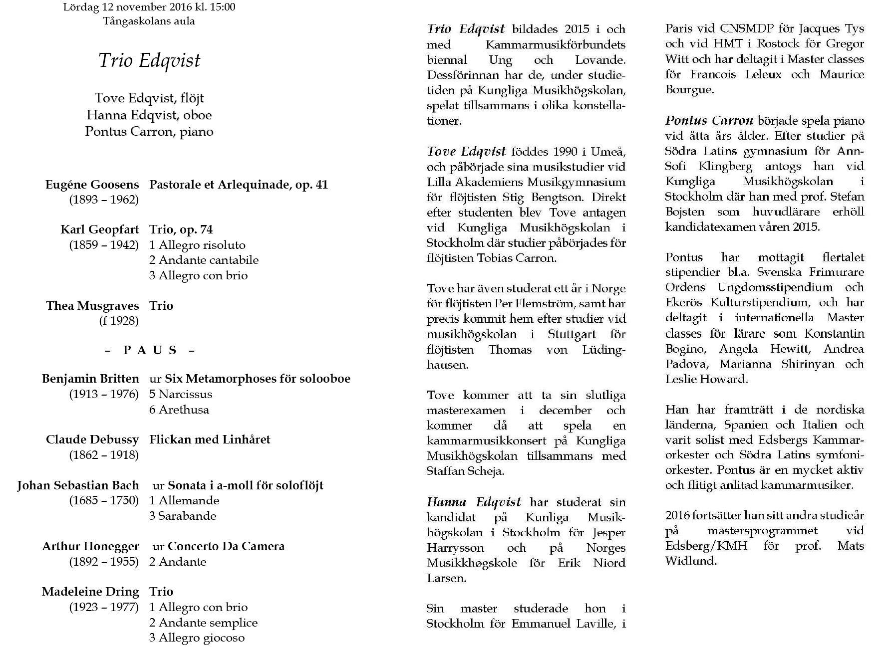 Broman, Simon Crawford - Phillips Lördag 29 oktober 2016 Tångaskolans aula Program |