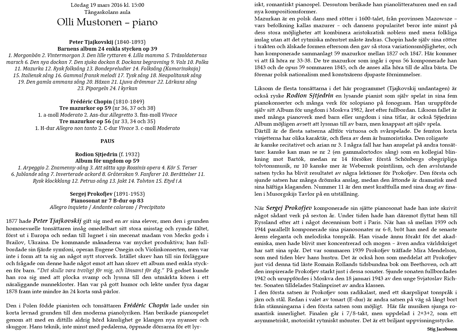 Mustonen - piano. Lördag 23 januari 2010 Tångaskolans aula |