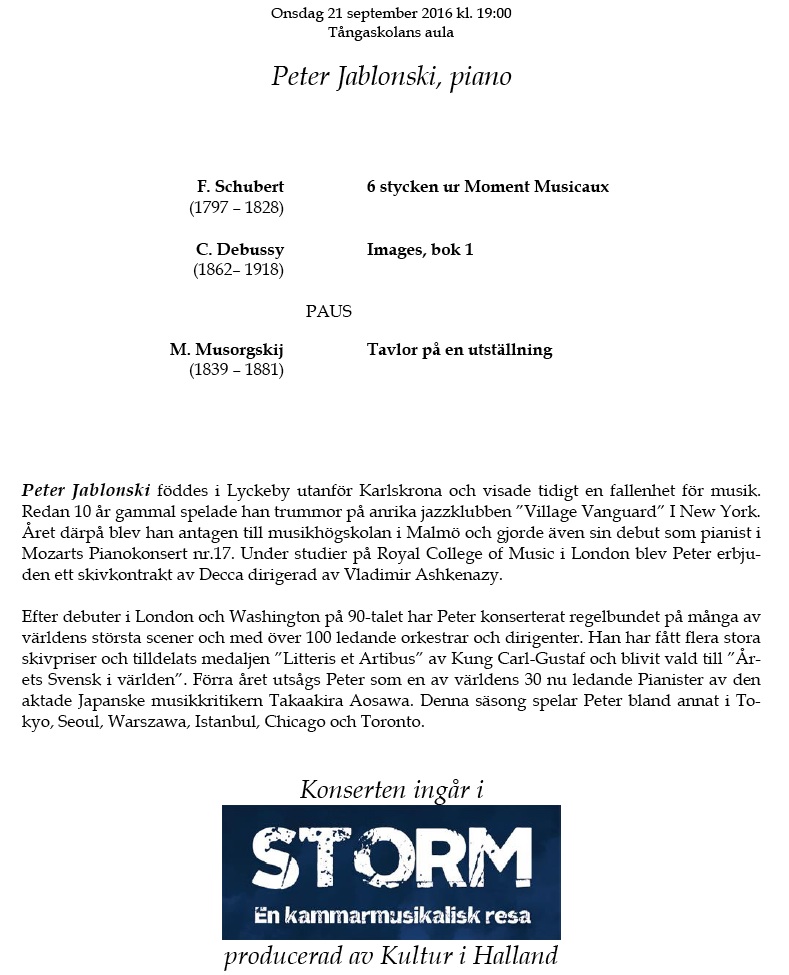 Jablonski Onsdag 21 september 2016 Tångaskolans aula Program |