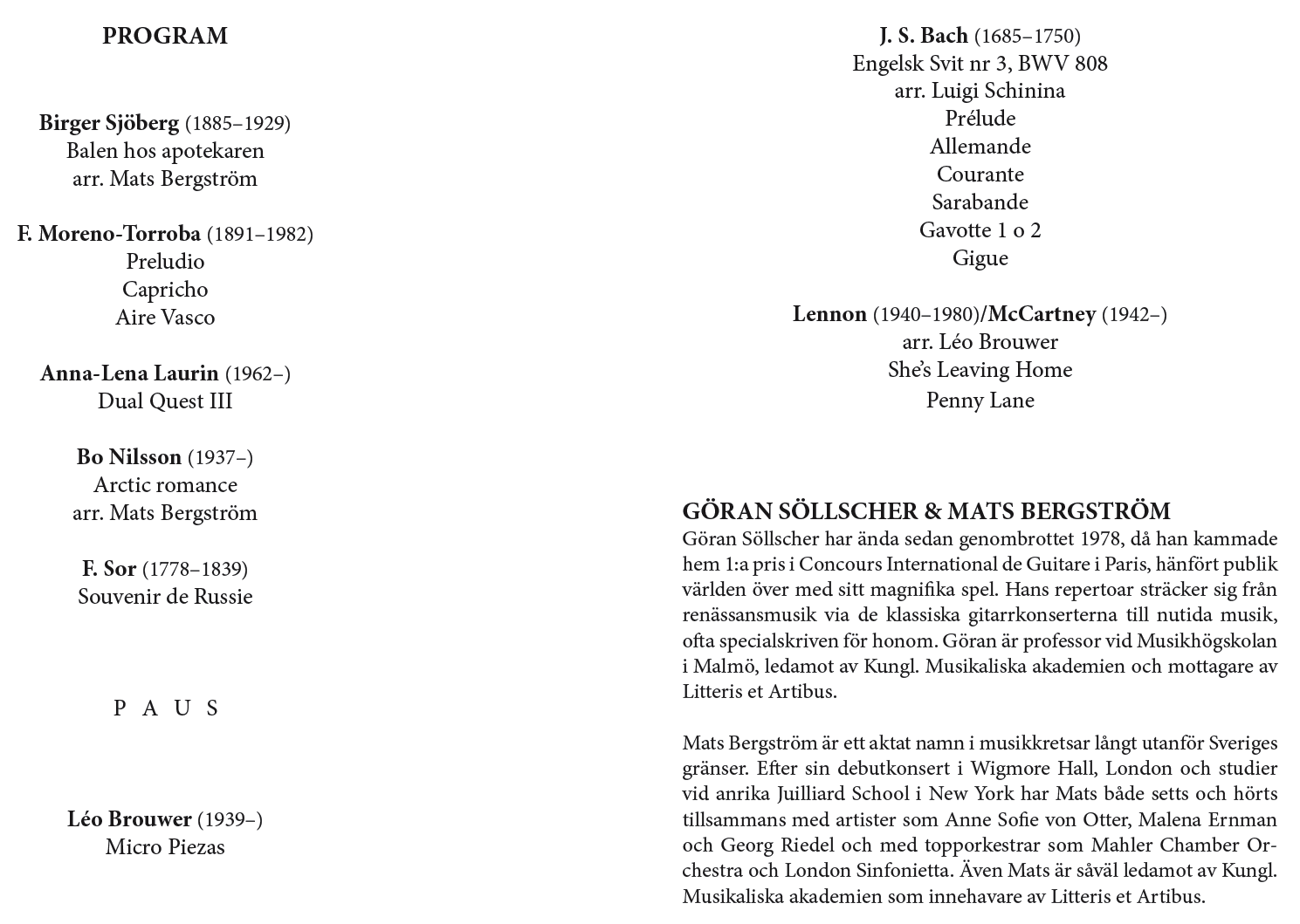 Söllscher & Mats Bergström Lördag 1 oktober 2016 Tångaskolans aula Program |
