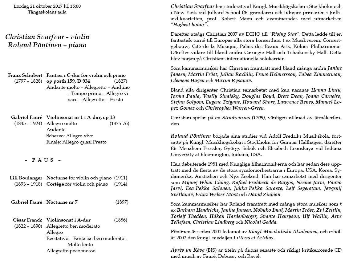 Svarfvar & Roland Pöntinen Lördag 21 oktober 2017 Tångaskolans aula Program |