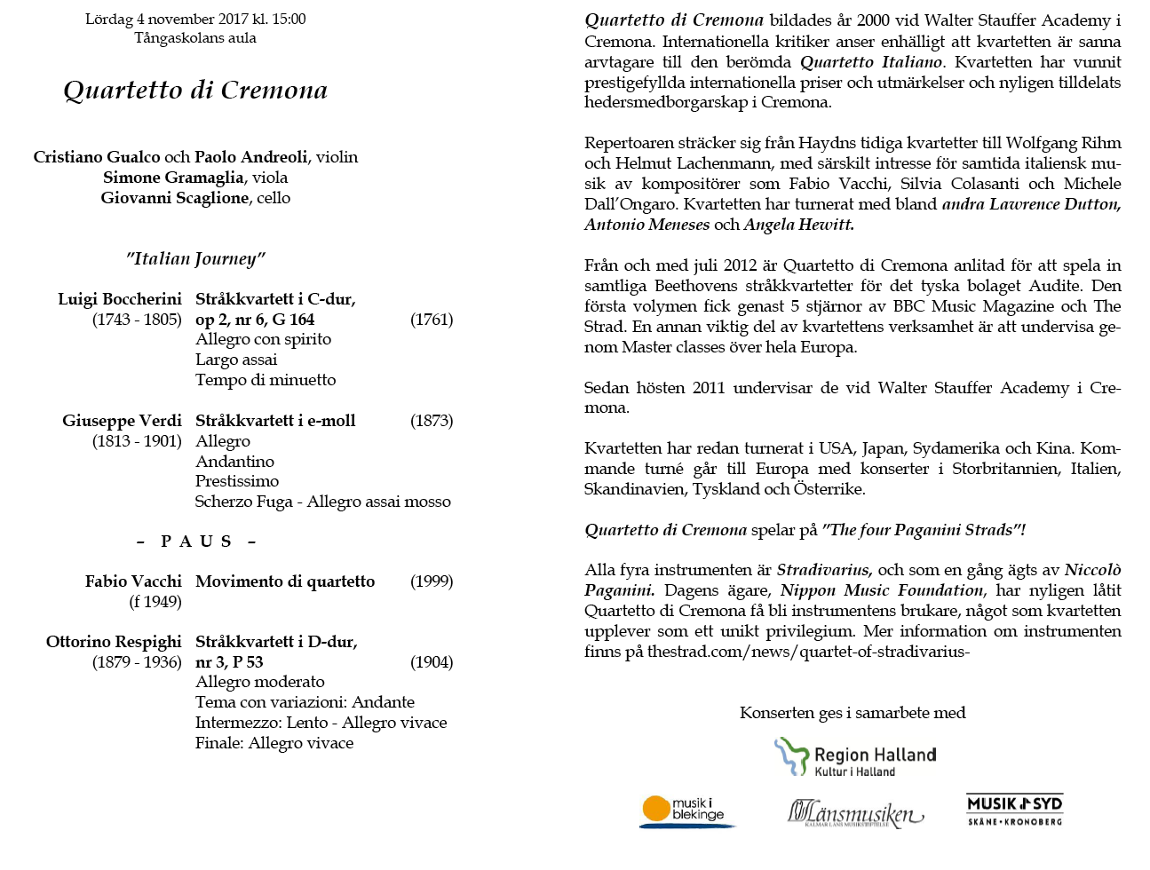 di Cremona Lördag 4 november 2017 Tångaskolans aula Program |