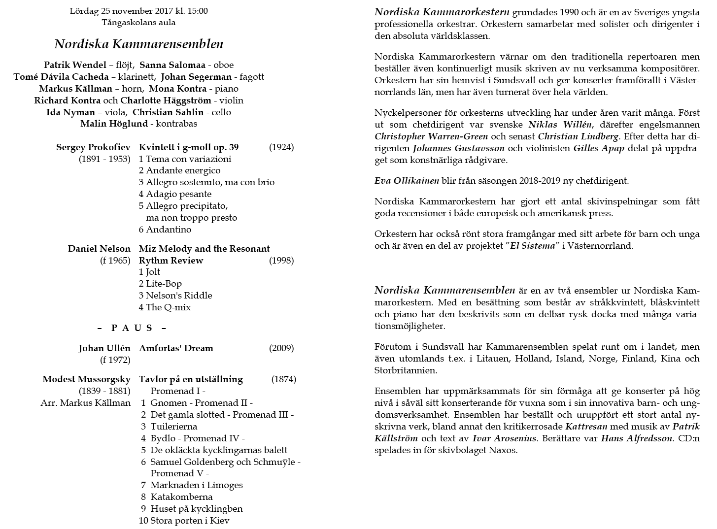 Kammarensemblen Lördag 25 november 2017 Tångaskolans aula Program |