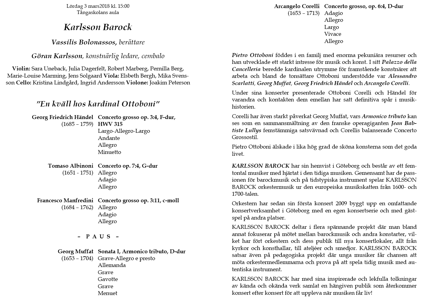 Barock & Vassilis Bolonassos Lördag 3 mars Tångaskolans aula Program |