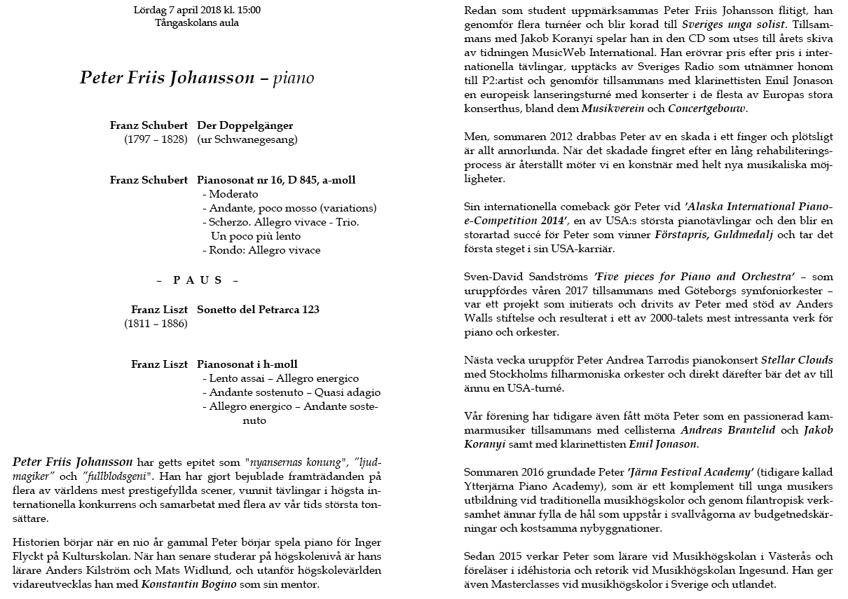 Peter Fris Johansson Lördag 7 april Tångaskolans aula Program |